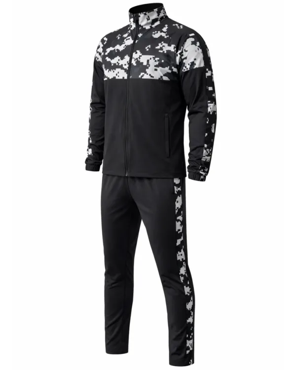 The unique CamoFlex design with digital camouflage detailing adds a bold and trendy look, while the Black color combination ensures a stylish and sporty appearance. The zip-up jacket with high neck provides added protection, and the slim-fit track pants enhance your overall silhouette.